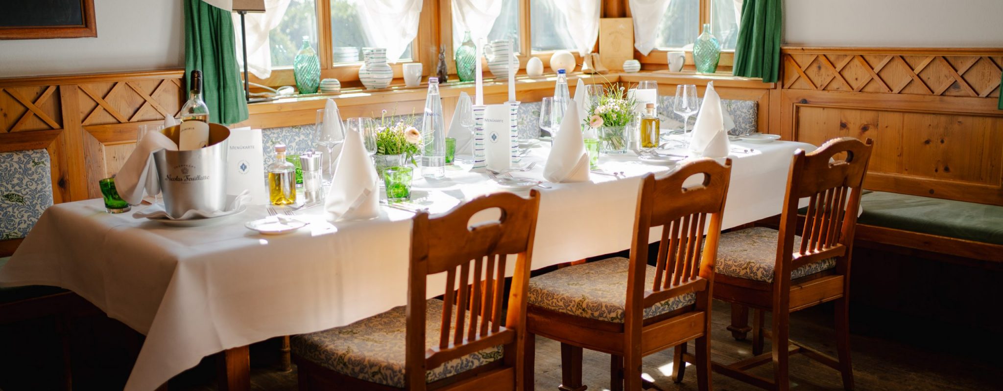 Genießen Sie unsere mit dem Michelin Green Star prämierte Küche, die regionale Akzente und nachhaltigen Genuss in den Mittelpunkt stellt. Von der gemütlichen Stube bis zur sonnigen Terrasse bieten wir den idealen Rahmen für Gesellschaften jeder Größe. Feiern Sie entspannt im Chiemgau und lassen Sie sich von unserem herzlichen Service begeistern.