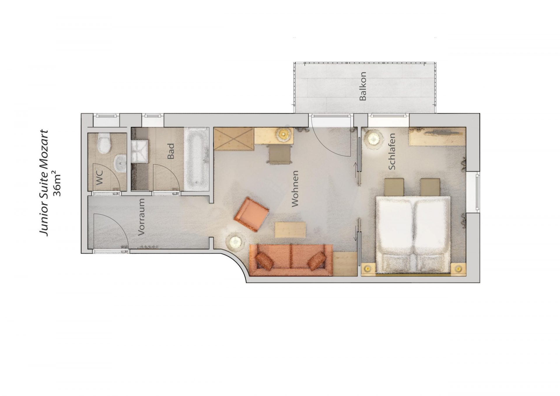 | 1- 4 | mit abtrennbaren Wohnbereich mit gemütlicher, ausziehbarer Couch, Faltscreen und Schreibtisch mit Internetanschluss Neu renoviertes Badezimmer mit Badewanne und separates WC Balkon, Minibar und Safe |